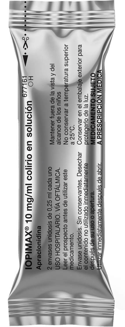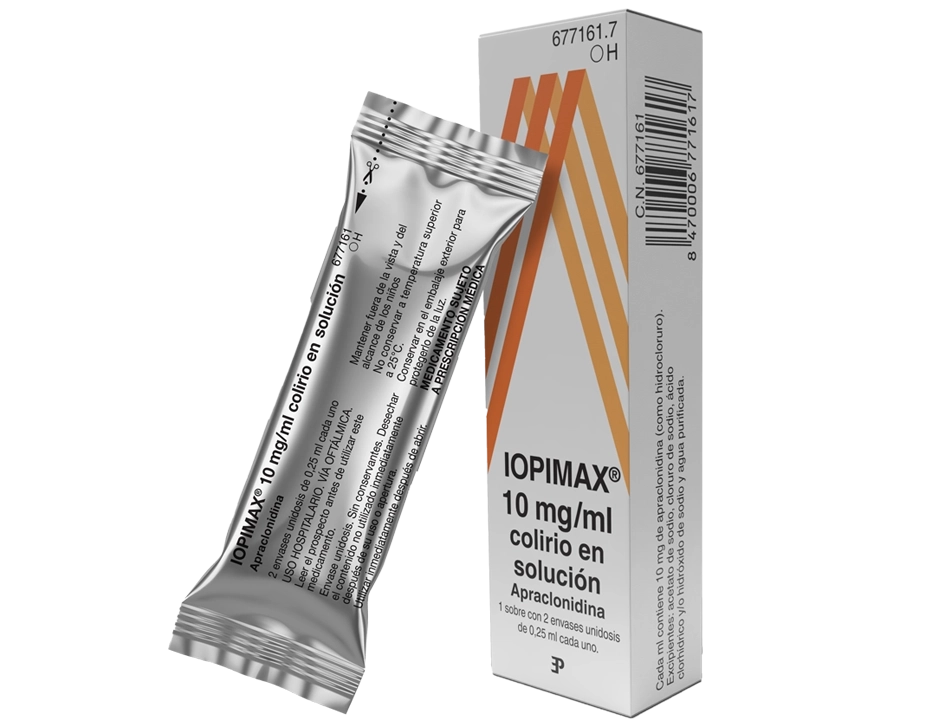 IOPIMAX® 10 mg/ml está indicado para controlar o prevenir las elevaciones posquirúrgicas de la presión intraocular que se producen en los pacientes tras la cirugía láser del segmento anterior. (Se han realizado ensayos clínicos en trabeculoplastia, iridotomía y capsulotomía).3
